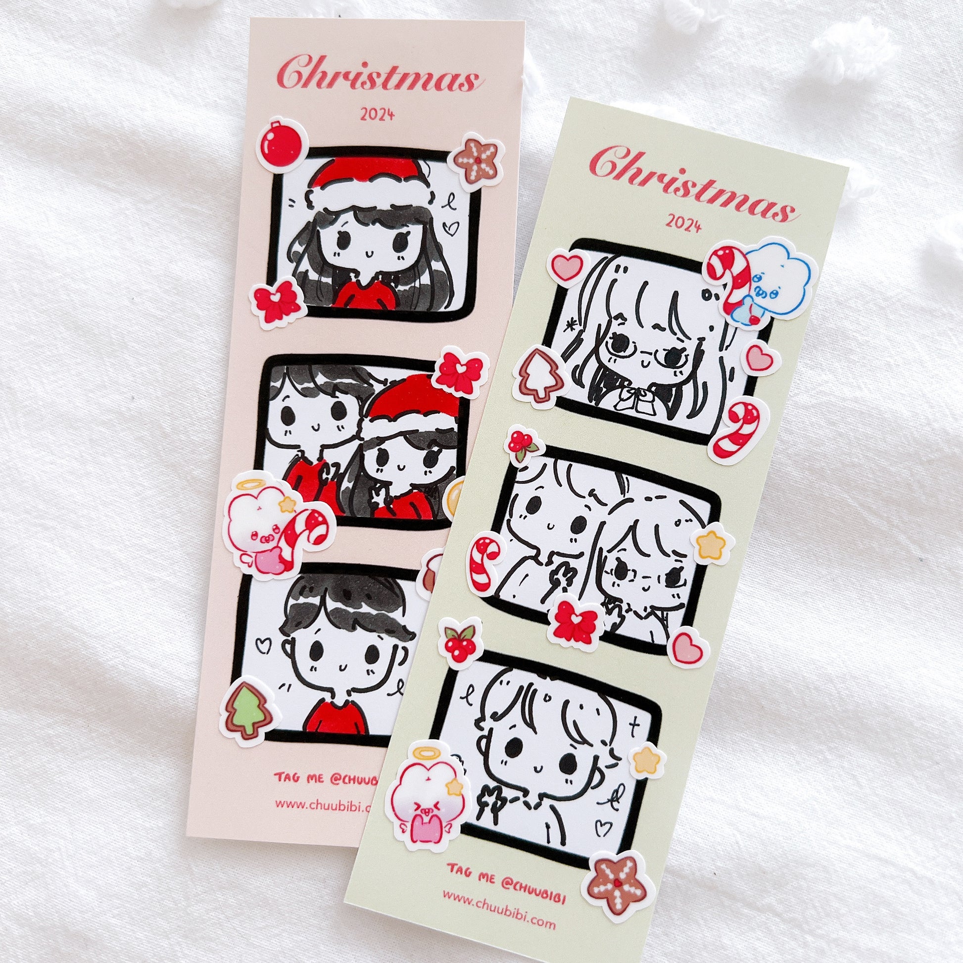 Christmas Photostrips - Have yourself and your loved ones custom drawn! With 2 colour and size options, each strip has a sheet of stickers for spicing up your photo strip!