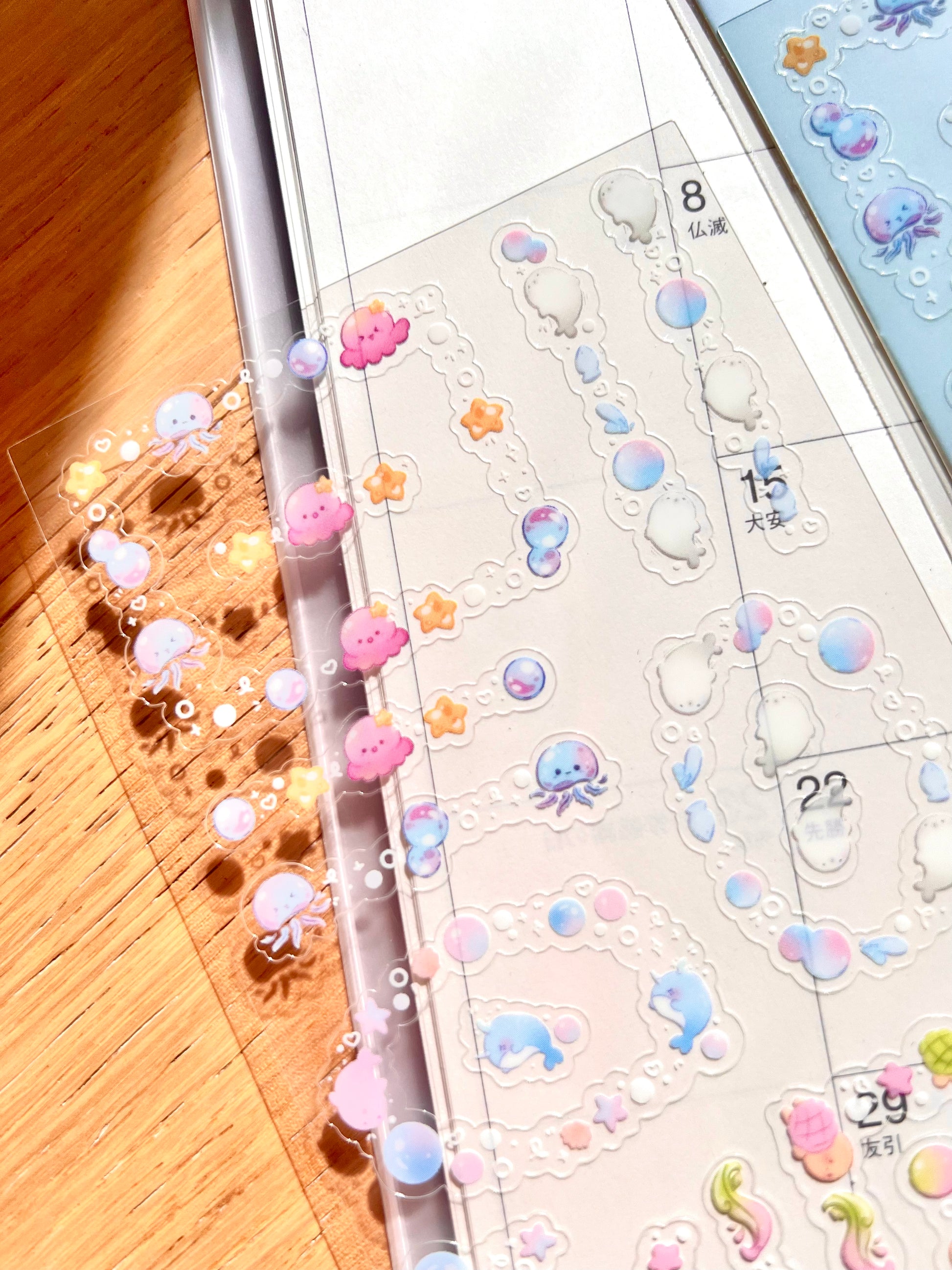 Hop onto the sticker craze with these Ocean Borders sticker sheets. Their clear and glossy finish adds a pop of color and cuteness to any surface!