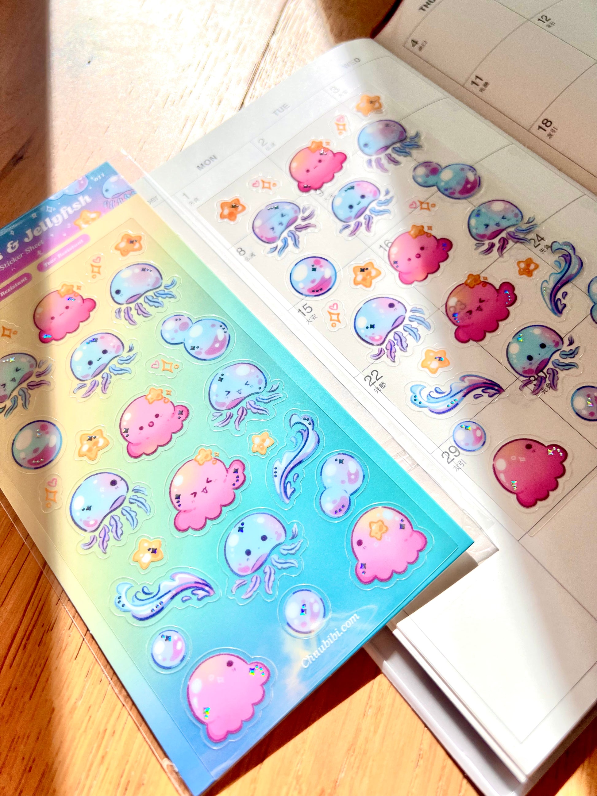 Hop onto the sticker craze with these Octopus and Jellyfish sticker sheets. Their clear and glossy finish adds a pop of color and cuteness to any surface!