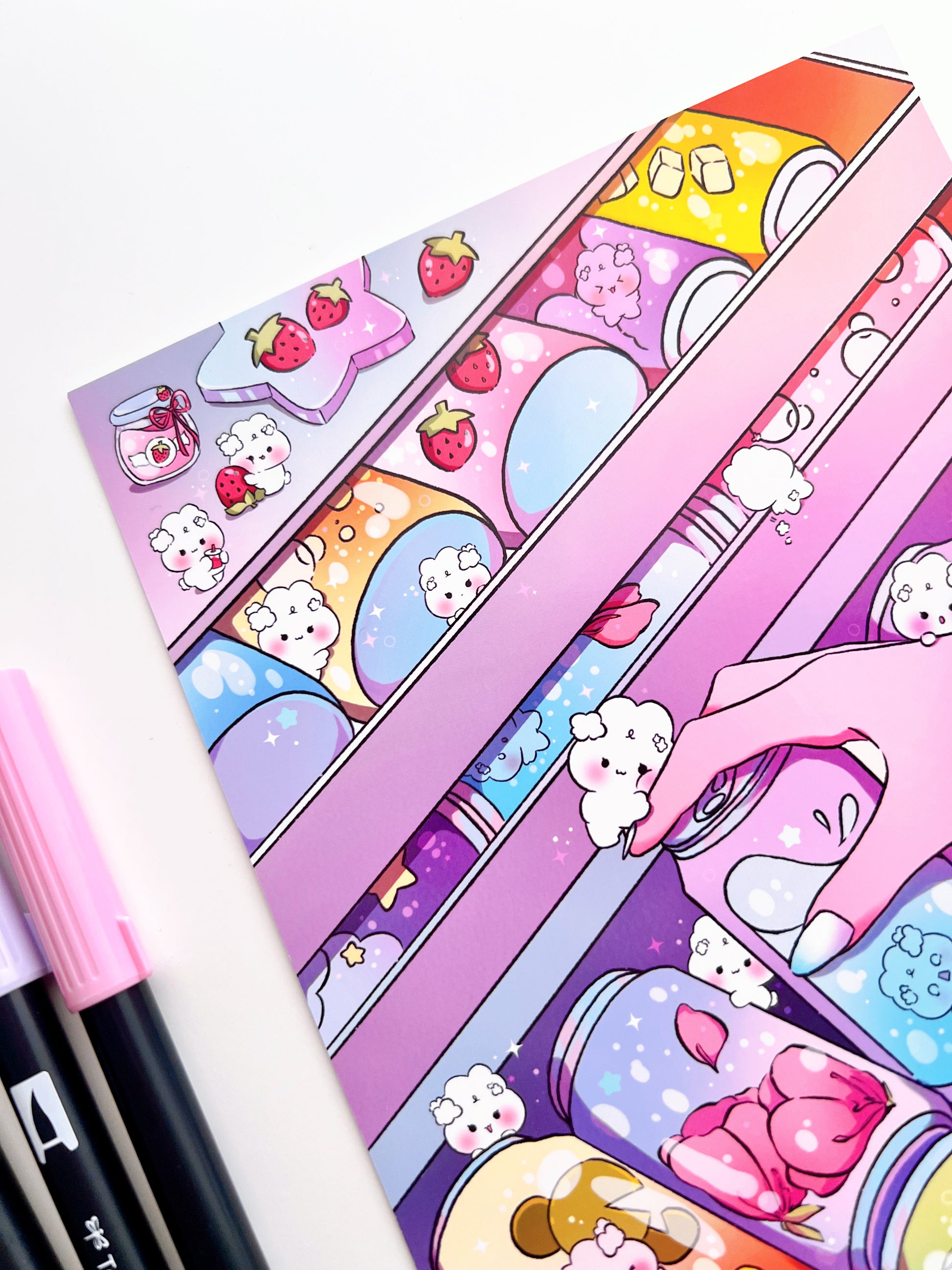 What’s better than a fizzy soda? A fizzy soda shared with adorable little bunnies! This playful art print combines the bright pop of soda cans with the charm of sweet bunnies, creating a fun and whimsical piece that’s full of personality.